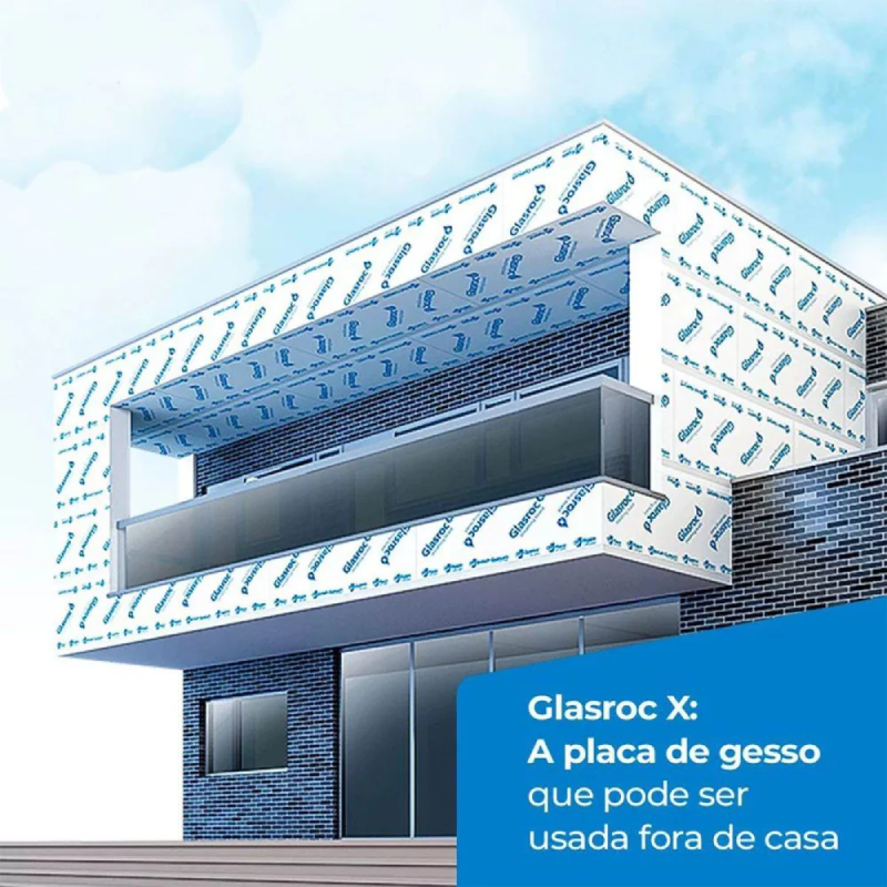 O Glasroc X, é uma placa de gesso destinada exatamente para o uso fora de casa. A resistência às intempéries se dá por conta da utilização de uma nova tecnologia, que compreende o uso de aditivos especiais na placa de gesso, que ainda é revestida em suas duas faces por um véu de vidro e um composto polimérico. Como resultado, surge um produto resistente a tempestades, umidade, mofo, raios ultravioleta, impactos e até fogo.